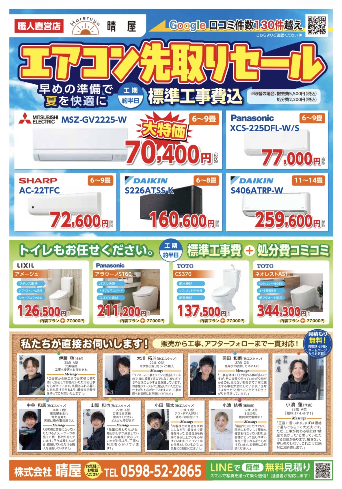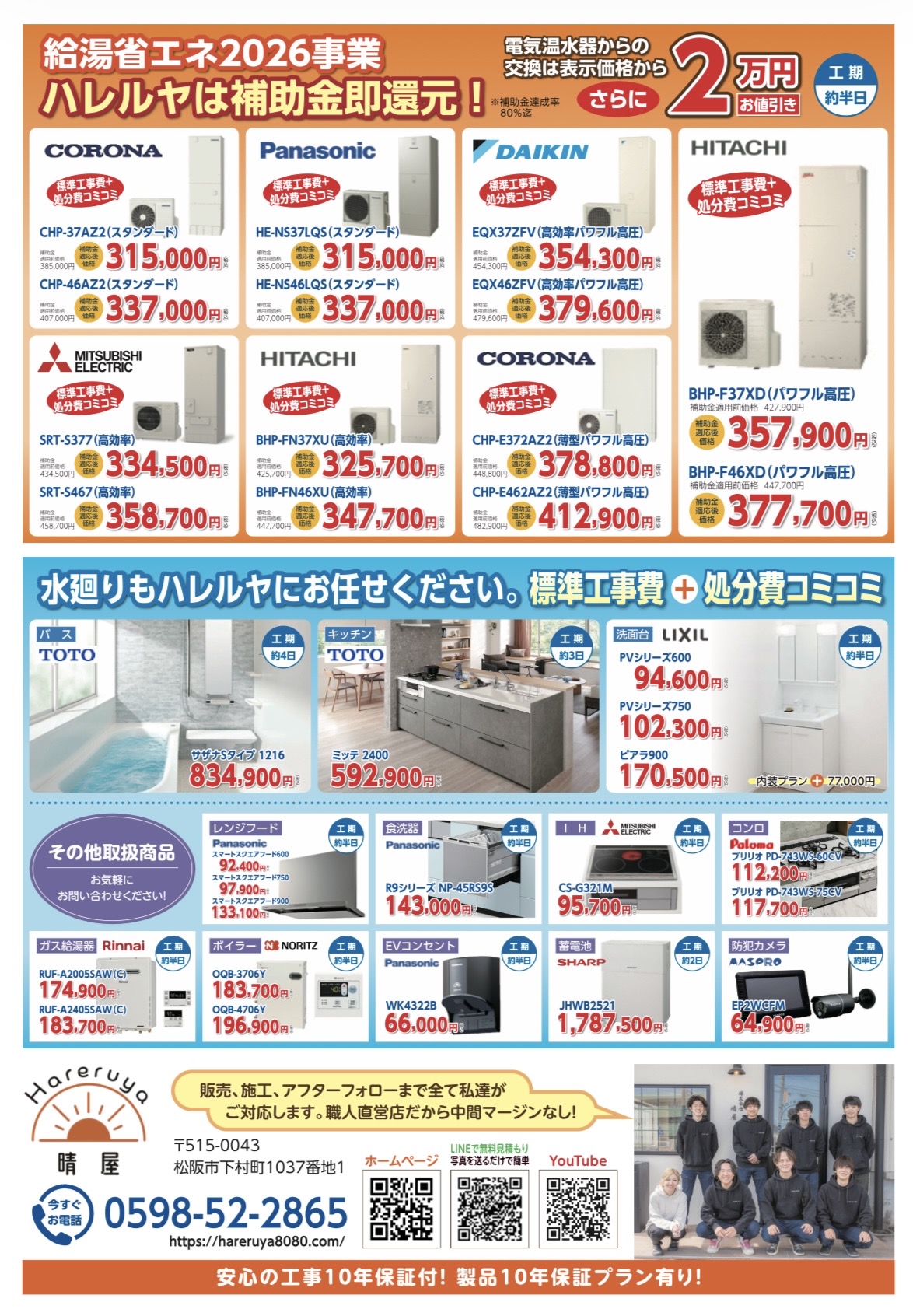 皆さま、初めまして!晴屋(ハレルヤ)です。 電気・水道を中心に各種住宅設備工事を行っています。